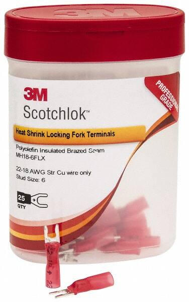 SKU 73125932Categories Abrasives & PolishersDescription#6 Stud, 22 To 16 Awg Compatible, Partially Insulated, Crimp Connection, Locking Fork Terminal1/4" Fork Width, Heat Shrink Insulation, Red, 1." Oal, 0.03" Thick.