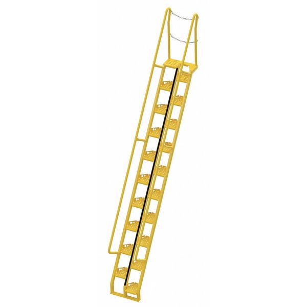 186 1/8 in Alternating Tread Stairs, Steel, 20 Steps, Baked-In Powder Coated FinishSKU G2126568Categories Antislip Tapes, Treads & Stair NosingsDescription Alternating Tread Stair Unit, Material Steel, Number of Steps 20, Handrails Included Yes, Load Capacity 350 lb, Climbing Angle 56 Degrees , Step Tread Perforated, Step Width 9 1/8 in, Step Depth 10 1/2 in, Base Depth 106 in, Overall Height 186 1/8 in, Color Yellow, Standards OSHA 29 CFR 1910.25(e), Overall Width 23 1/2 ingraingerSKU: 6EPE5, mscSKU: , zoro_no: G2126568, mongo_id: 65bbe82a22d7a989a98dd4e7