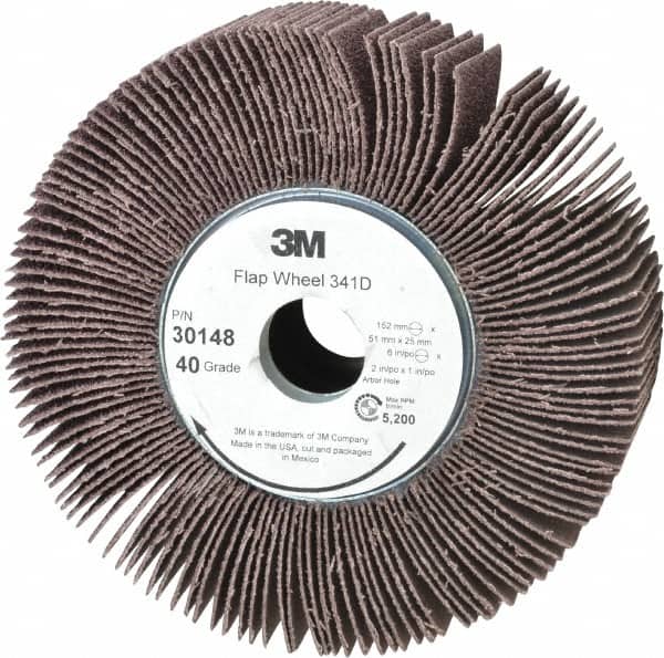 3M, Flap Wheel, 6" Diam, 40 Grit Aluminum Oxide UnmounteSKU 9289976Categories Flap Wheel , Flap Wheels , Unmounted WheelDescription6" Diam, 40 Grit Aluminum Oxide Unmounted Flap Wheel1" Hole, 2" Wide, Coated, Coarse Grade, 5,200 Max Rpm , X Weighted, Cloth Backing.